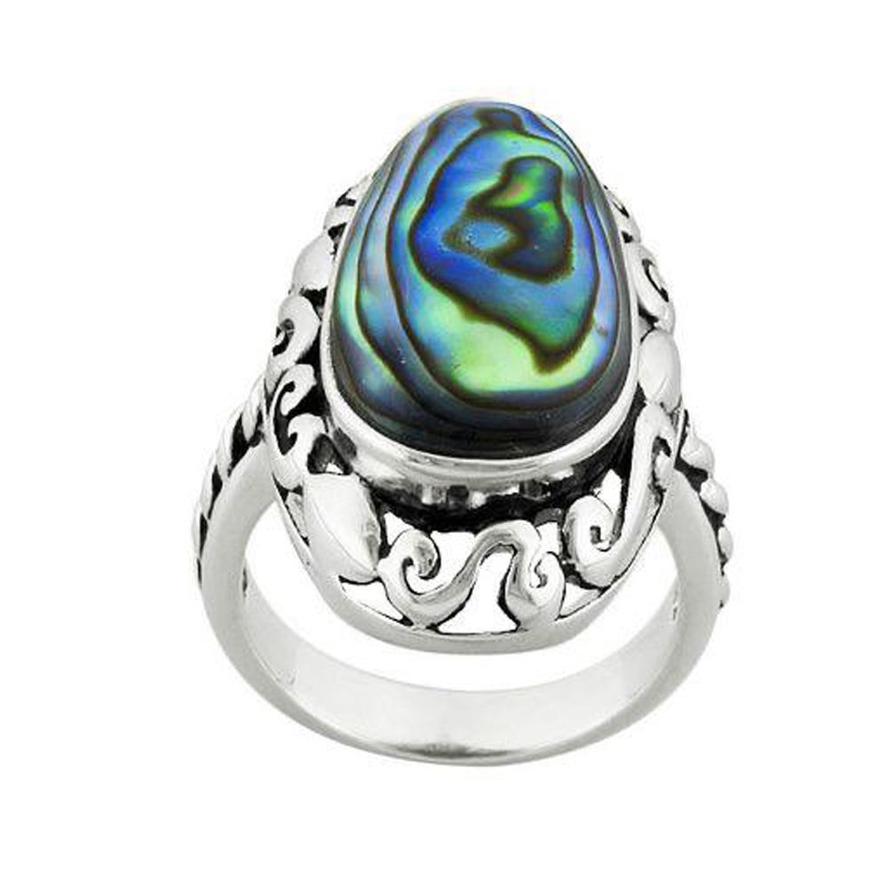 Silvesto India Abalone Shell Gemstone 925 Sterling Silver Ring
