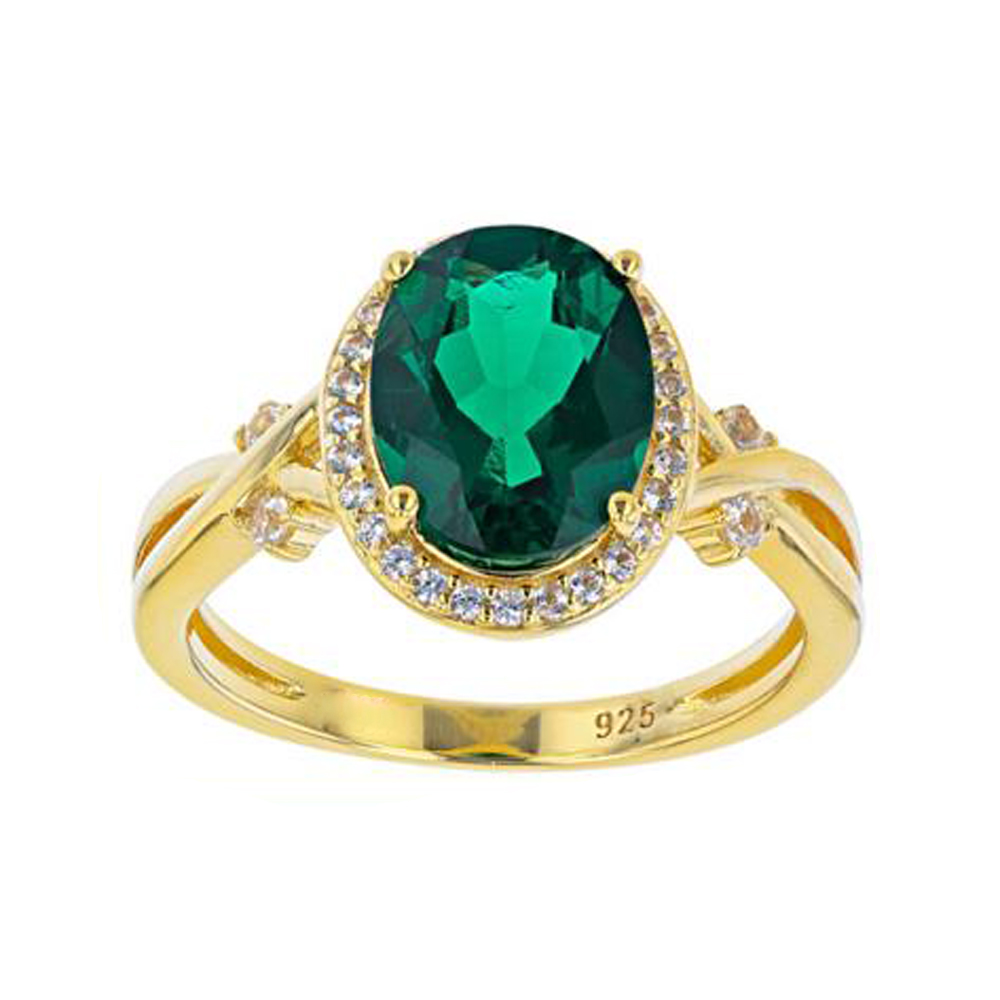 Silvesto India Emerald Gemstone And 925 Sterling Silver Gold Micron Plated Ring